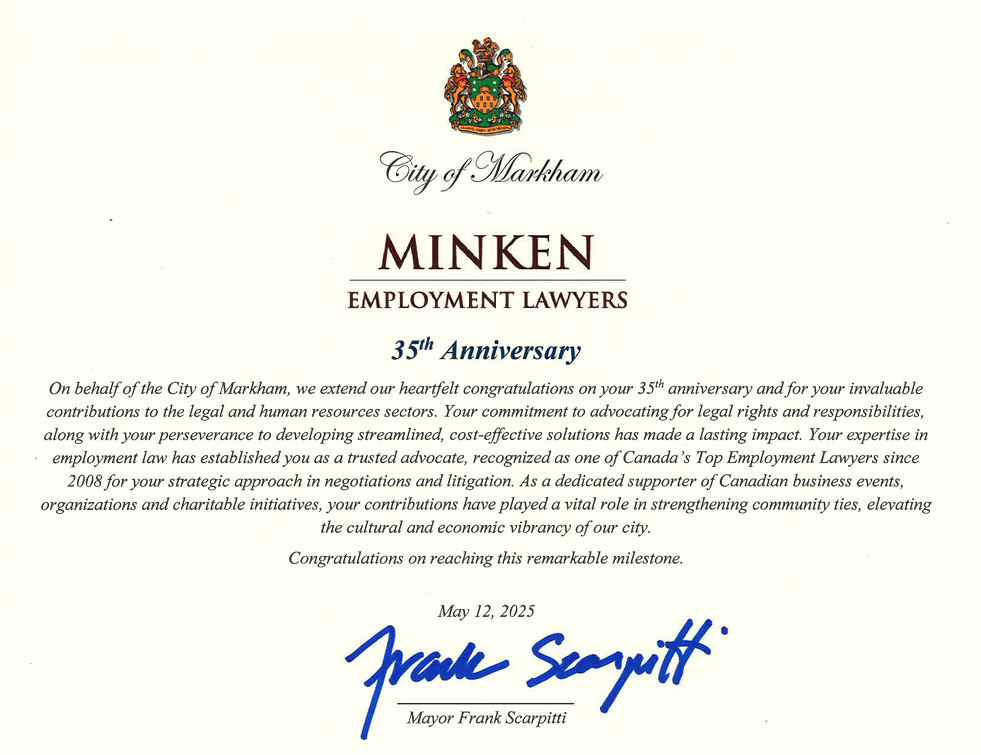 City of Markham 35th Anniversary Certificate